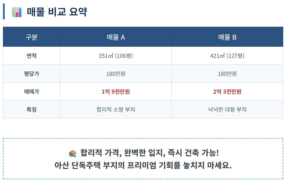 합리적인 가격 경쟁력: 평당 180만원이라는 합리적인 가격으로 책정되어 있어, 향후 지가 상승 시 시세 차익을 기대할 수 있습니다.