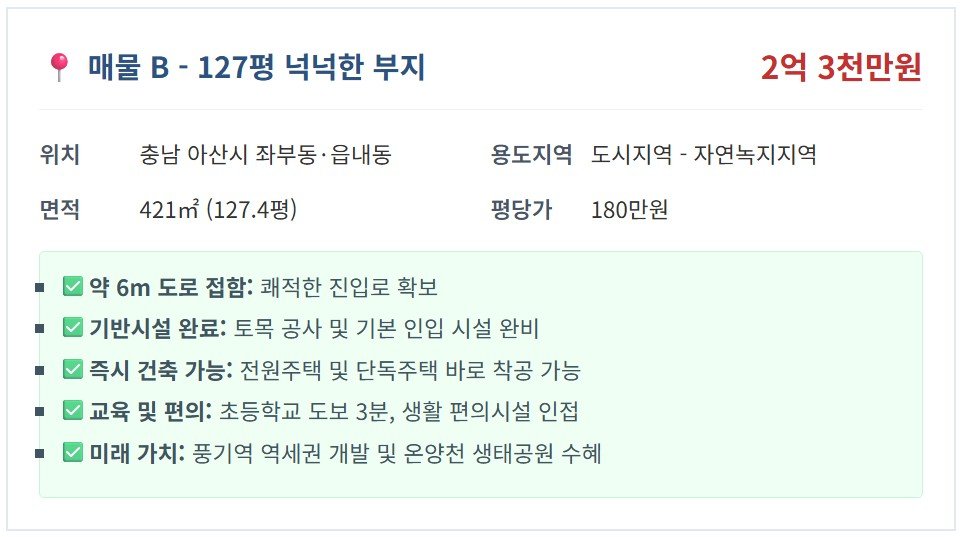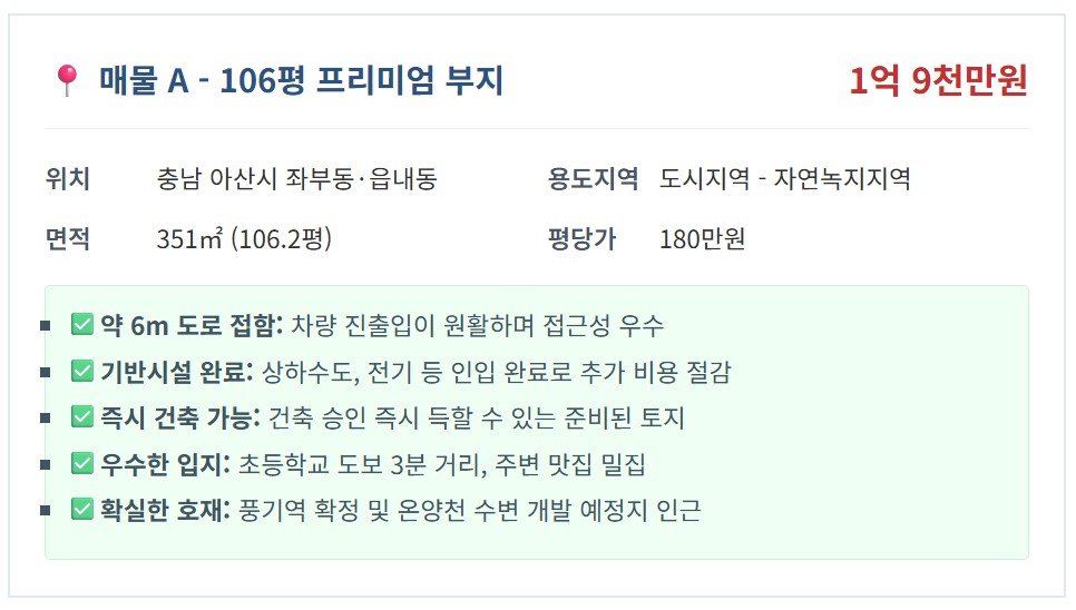 충남 아산시의 구도심인 좌부동과 읍동(구온양)일대는 최근 다양한 개발 호재와 함께 주거 선호도가 높아 지고 있는 지역입니다. 온양온천역을 중심으로 한 기존의 생활 인프라를 그대로 누리면서 아산 전원주택 생활을 영위할수 있는 지역으로 이번에 이 가능한 아산 단독주택 부지를 매매합니다., 새롭게 확정된 1호선 풍기역 신설과 온양천 생태하천 복원 및 수변공원 조성 사업으로 인해 미래 가치가 기대되는 곳입니다.